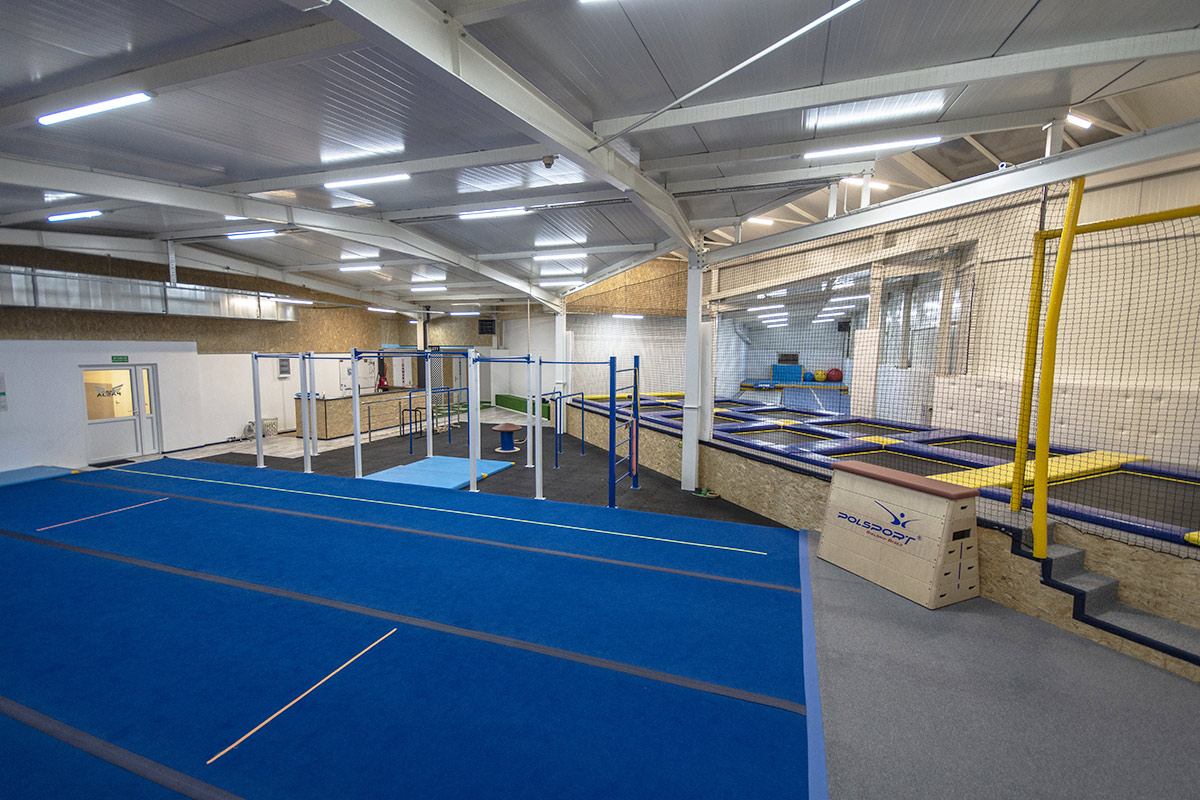 Specjalnie przystosowana sala, wyposażona w profesjonalny, najwyższej klasy sprzęt akrobatyczny umożliwia prowadzenie zajęć na najwyższym poziomie.