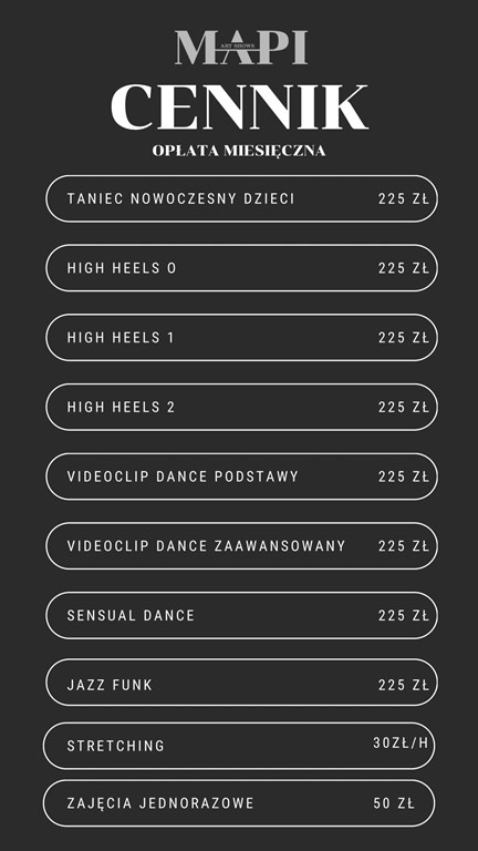 Cennik zajęć MAPI ART SHOWS 2025
